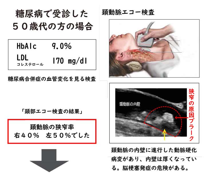 糖尿病患者さんの大血管症を「早期に発見」するために頚部エコー検査をしています!!